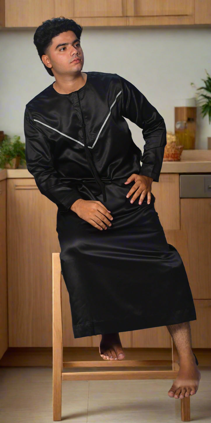 Sahar Al-Fajr captures the calm and clarity of the early morning sky before Fajr. This light grey kurta is crafted from premium shiny fabric that reflects simplicity, purity, and a sense of inner peace. Subtle and graceful, it is a perfect choice for occasions when modesty, comfort, and quiet elegance matter most.