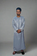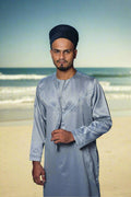 Ghareeb Al-Layl is inspired by the quiet strength of the night—composed, grounded, and full of presence. This dark grey kurta is designed for the man who seeks grace without excess. Its premium shiny finish reflects dignity and calm, making it ideal for spiritual gatherings, evening events, or moments of reflection.